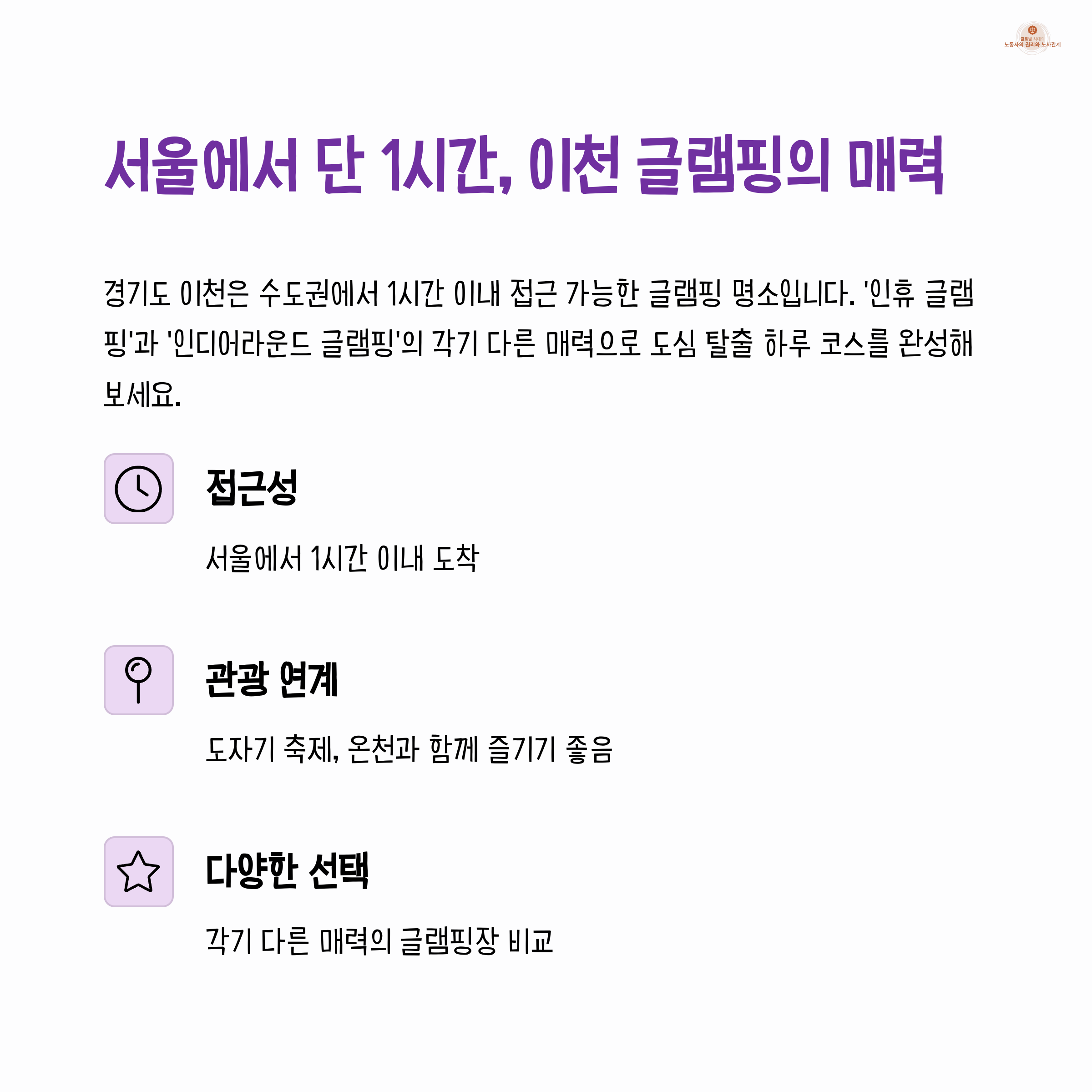 "서울에서 하루면 충분히 힐링 가능한 이천 글램핑 여행" 입니다.