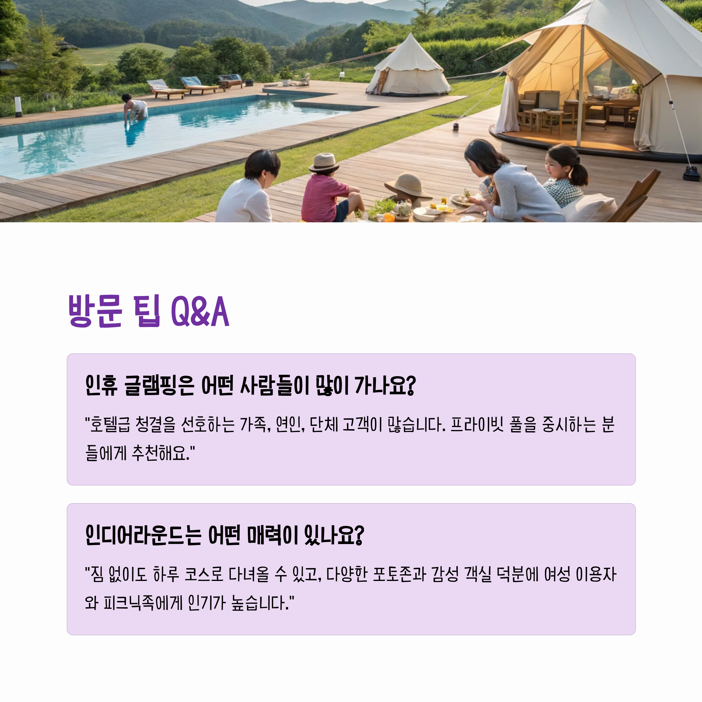 "인휴 글램핑은 어떤 사람들이 많이 가나요?"