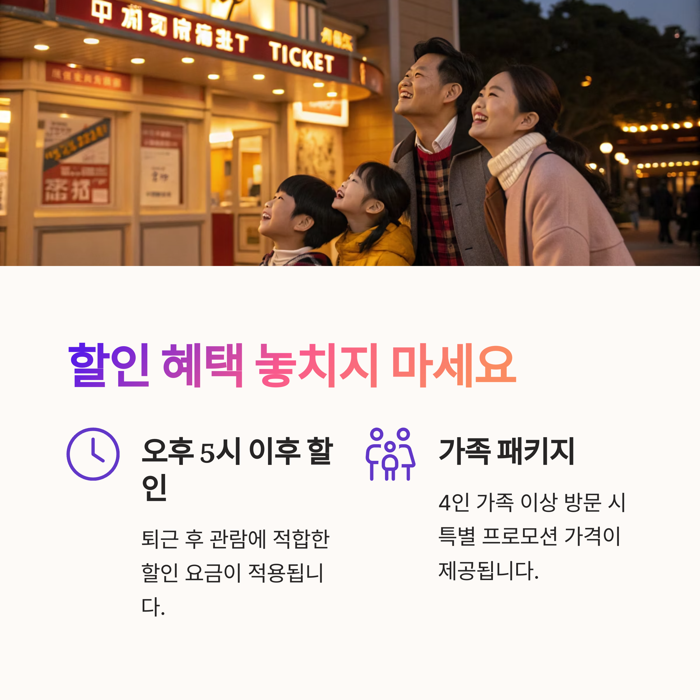 오후 5시 이후 할인 및 가족 패키지 혜택