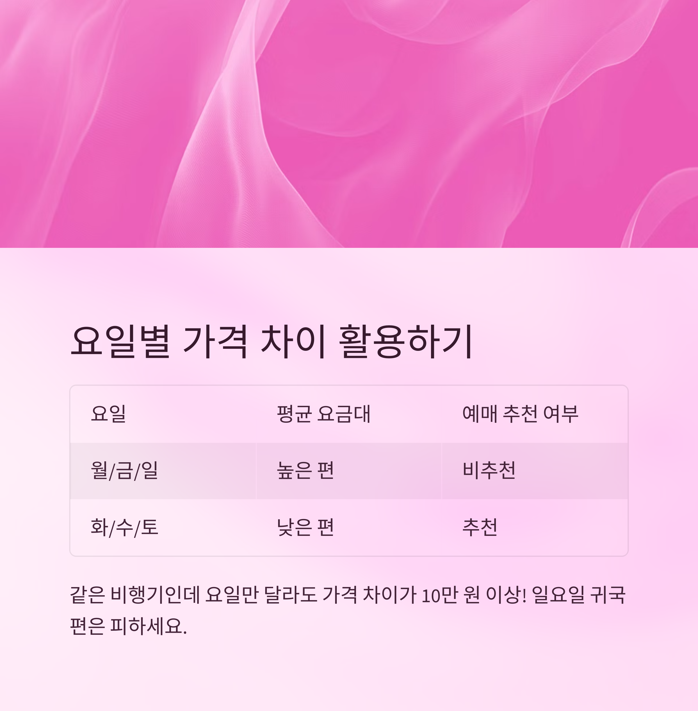 "같은 비행기인데 요일만 달라도 가격 차이가 10만 원 이상!"