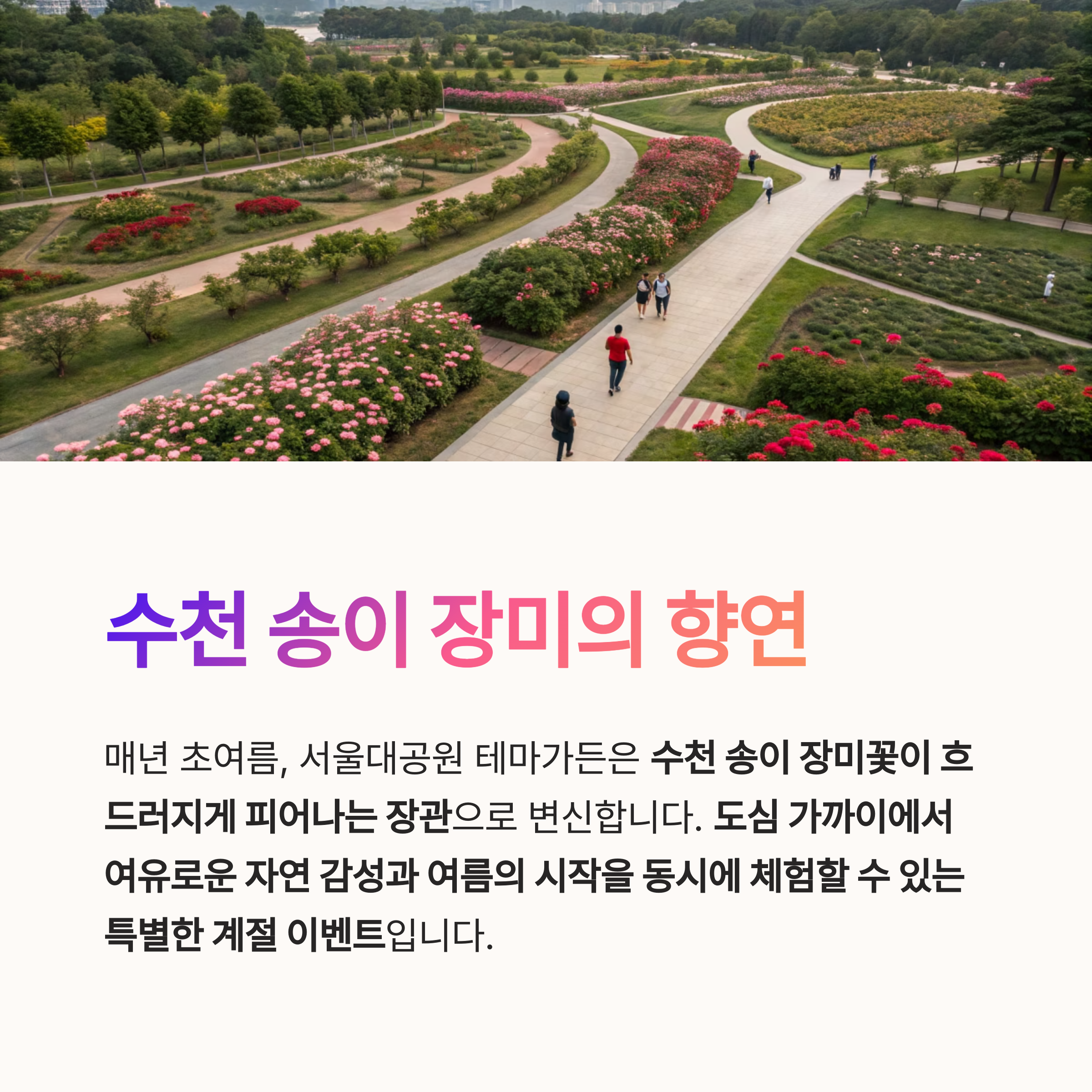 도심 가까이에서 여유로운 자연 감성과 여름의 시작을 동시에 체험할 수 있는 특별한 계절 이벤트로 주목받고 있습니다.